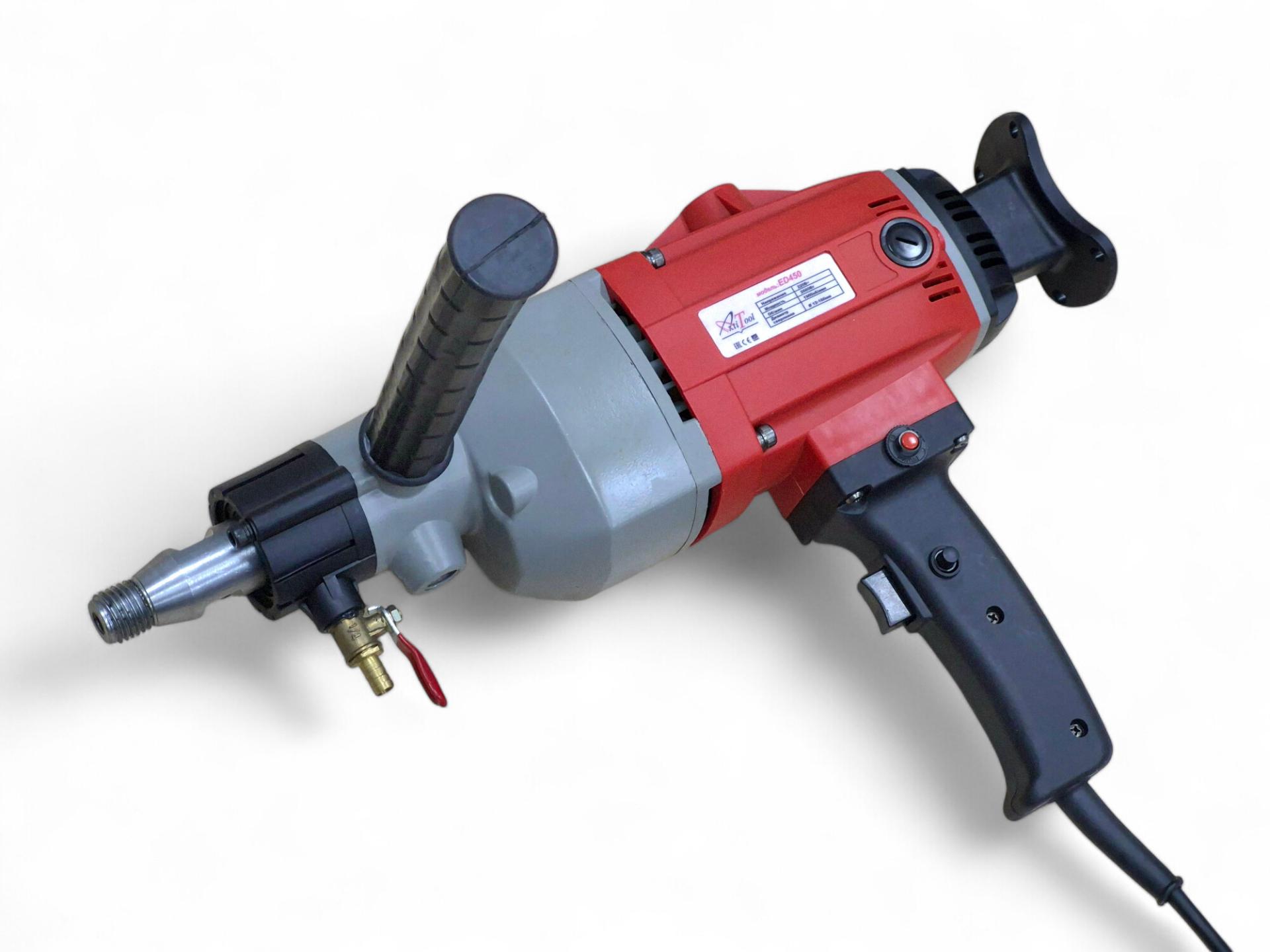 Дрель для алмазного бурения AktiTool ED450 — это инструмент, предназначенный для создания отверстий в различных материалах, таких как бетон, кирпич, камень, асфальт и т.д. Максимальный диаметр алмазной коронки, которую можно использовать с этой дрелью, составляет 160 миллиметров. AktiTool ED450 подходит как для сухого, так и для мокрого бурения.